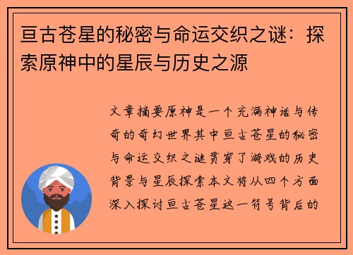 亘古苍星的秘密与命运交织之谜:探索原神中的星辰与历史之源