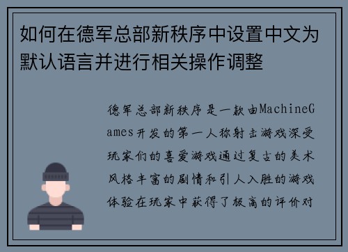 如何在德军总部新秩序中设置中文为默认语言并进行相关操作调整